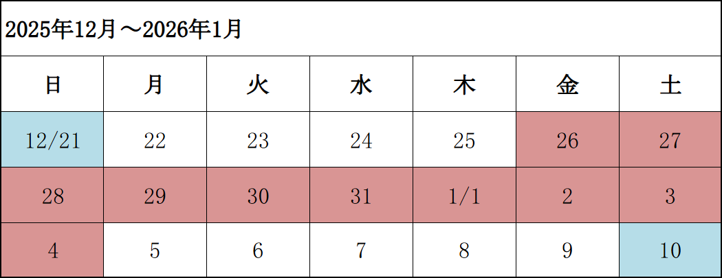 休業中に頂きました「お問い合わせ」につきましては、2026年1月5日(月)以降に対応させて頂きます。
