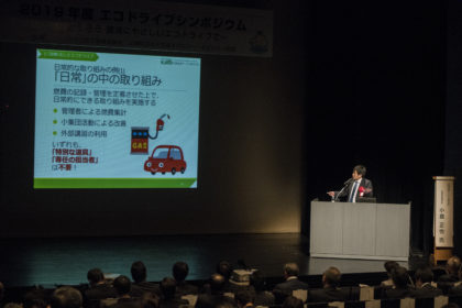 「エコドライブシンポジウム」は、環境に配慮した運転「エコドライブ」を広く普及させるため、エコモ財団が毎年開催しており、エコドライブに関する基調講演や優秀なエコドライブへの取組み事例が紹介されその年の「エコドライブ活動コンクール」の総括の場でもあります。