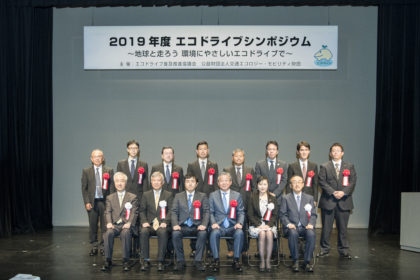 エコドライブ活動コンクールの表彰式では、それぞれ独自のエコドライブ活動を行なう中で、「組織的な取組体制」や「教育の実施」、「燃費管理」などが評価されて選ばれた受賞者の中から代表して、上位10団体への表彰が行われました。